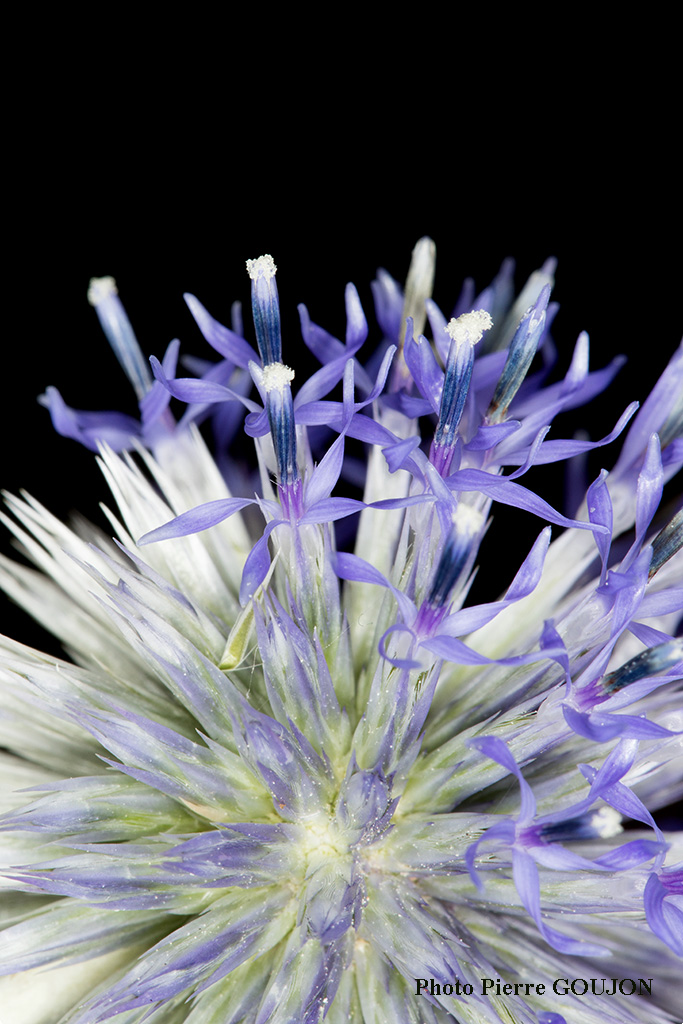 Plante de la famille des Asteraceae, aussi appelée Azurite, Boule d'azur. Elle fleurit de juillet à septembre.