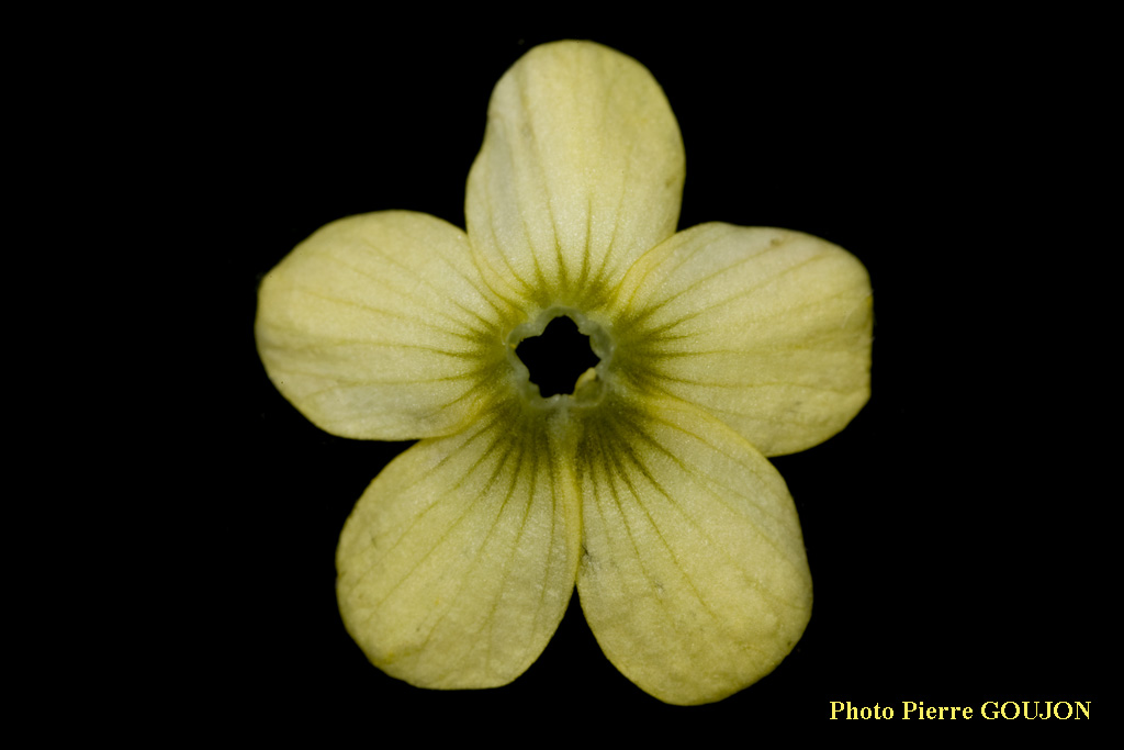 La corolle présente 5 lobes égaux, disposés en coupe et soudés seulement par leur base, avec l'extrémité arrondie.