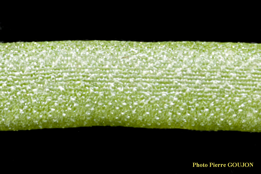 La tige est pleine, avec une consistance herbacée, à section ronde. Elle a une surface lisse, et elle est pubescente, avec des poils glanduleux.
